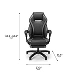 - ADJUSTABLE ERGONOMICS: Adjust this comfortable gaming chair to your preferences with pneumatic height-adjustments and padded pivoting loop arms. This gaming chair's seat thickness is 4.7" and overall dimensions are 31.5" D x 27.2" W x "44.9-48.6" H.