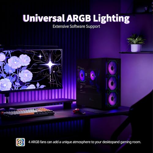 - ARGB Lighting and Advanced Cooling - Stay cool under pressure with four black ARGB fans and a digital temperature display CPU cooler. Customize lighting effects easily using the included remote.