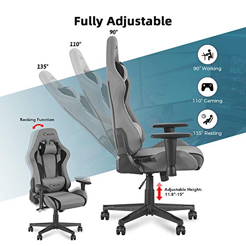 Okeysen Gaming Chair Fabric Computer Chairs, Ergonomic Video Game Chairs for Kids Adults, Gamer Chair with Massage, Gaming Recliner for Teens. (Grey)
