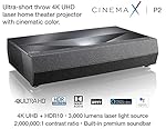 Optoma CinemaX P2B Black Smart 4K UHD Laser Projector for Home Theater | 3000 Lumens Superior Image with Laser & 6-Segment Color Wheel | Ultra-Short Throw | Built-In Soundbar | Works w/ Alexa & Google