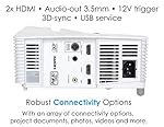 Optoma EH200ST Full 3D 1080p 3000 Lumen DLP Short Throw Projector with 20,000:1 Contrast Ratio and MHL Enabled HDMI Port , white