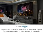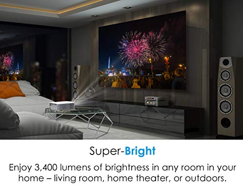 - SUPER-BRIGHT: Enjoy an incredible 3,400 lumens of brightness in any room in your home theater or living room, or in your backyard for outdoor movie nights