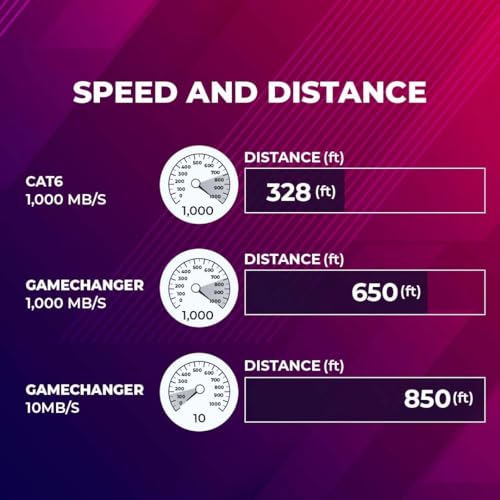 - 𝗣𝗲𝗿𝗳𝗲𝗰𝘁 𝗳𝗼𝗿 𝗟𝗼𝗻𝗴-𝗗𝗶𝘀𝘁𝗮𝗻𝗰𝗲: Transfer up to 2.5 Gbps and deliver full PoE across 656 feet. Reach up to 850 feet at 10 Mbps more than double the typical Cat6 range. Fewer runs. Less equipment. More savings. Built for homes and businesses using long ethernet cable installations.