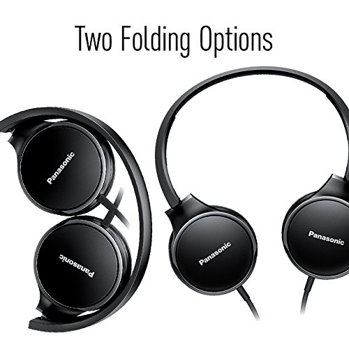 PANASONIC 2-Tone Color Foldable Headphones with Microphone, Call Controller and 3.9 ft Audio Cord Compatible with iPhone, BlackBerry, Android - RP-HF300M-K - On-Ear Headphones (Black/Black)