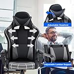 - COMFORT FROM EVERY ANGLE - Our high-back gaming chair is thickly cushioned for maximum comfort, whether you’re spending long hours at the office, in front of the computer, or gaming. Covered with breathable premium PU leather, the chair is equipped with freely adjustable lumbar support and a headrest pillow to protect your spine and neck, while the adjustable reclining feature allows users to lock in any reclining position, from 90-135°.