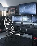 PC Gaming Chair Ergonomic Office Chair Racing Computer Chair with Lumbar Support Headrest 2D Armrest Footrest Task Rolling Swivel Ergonomic E-Sports Adjustable Desk Chair for Men Gamer(White)