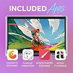 - PREMIUM SOFTWARE: Elevate your creative potential with the X14's inclusion of premium drawing and animation apps. Experience the power of pre-installed apps like Concepts, Infinite Painter, and Flipaclip, which offer advanced tools and features to enhance your artistic endeavors. Additionally, the X14 comes with Artixo, a specialized app that provides step-by-step tutorials tailored for those new to drawing, allowing beginners to learn and develop their skills with ease.