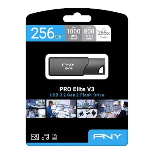 PNY PRO Elite V3 256GB USB 3.2 Gen 2 Flash Drive – Up to 1000MB/s Read, Up to 800MB/s Write, Extreme Performance for Professional Data Storage and Transfers, Premium Metal Design, Type-A Connector