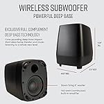 - INCLUDES PLUG AND PLAY WIRELESS SUBWOOFER & TWO WIRELESS SPEAKERS, which are instantly recognized by the sound bar the moment you power them on. The sub supports an 8” downward firing driver and the wall mountable speakers each have a 3" full range driver