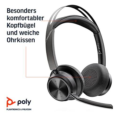 Poly - Voyager Focus 2 UC USB-A Headset with Stand (Plantronics) - Bluetooth (Stereo) Headset with Boom Mic - USB-A PC/Mac Compatible - Active Noise Canceling - Works w/Teams, Zoom (Certified) & More