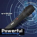 - Product 2: ULTRA-WIDE FREQUENCY: This black wireless handheld microphone system features ultra-wide frequency and broad audio response range with low distortion. Enjoy cordless singing to karaoke music and mobility for energetic on-stage performance