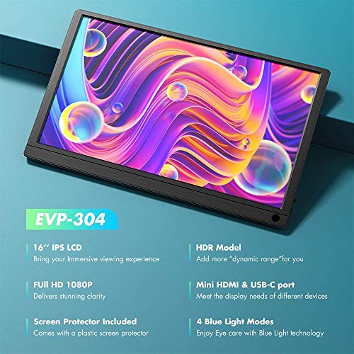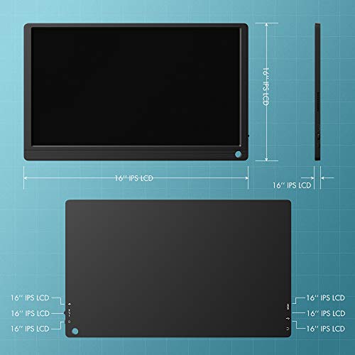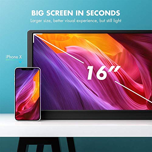 Portable Monitor, 16 Inch Bluelight Eye Care Full HD 1080P HDR Monitor with Screen Projector, Dual Screen for PC/Mac/Windows/Tablet/Laptop/Xbox/Switch/Phone/SLR Camera/DVD Player