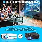 Native 1080P Projector Support 4K Full HD, WiMiUS S1 Top Bright Projector Support 60HZ Fresh Rate, Home & Outdoor Video Projector w/ 4D Keystone & 10W Speaker for iOS, Android, TV Stick
