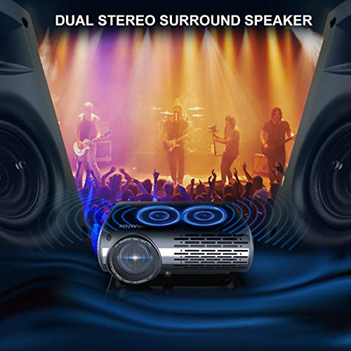 - Advanced SRS Speaker and Native 1080P Projector---With double advanced 10W speaker, this smart projector will produce excellent sound. No need to add external speakers. In addition, native resolution 1920*1080 will bring you 4 times more details than native 720P projectors. With these features, this TV projector will bring you richer, more realistic images, offering a true cinematic viewing experience.