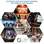- [Meet Your Home Needs]Watch movies, take online classes, or keep the kids entertained with hours of cartoons and educational videos [ideal for use in low-light environments]. It's the innovation of traditional projector, built-in stereo speakers, adjust keystone and focus to get 32’’ 176’’ projection size with 1.5m-5m projection distance, bring excellent spectating experience. Perfect projector for outdoor movies and movie projector for indoor use.