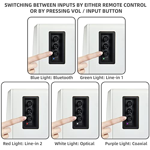 - 【MULTIPLE INPUT】*Optical and coaxial inputs-digital input to enable lossless connection to most TV & computers. * Easy wire connection up to 2 devices with AUX Line input at the same time, no plugging and switching needed.