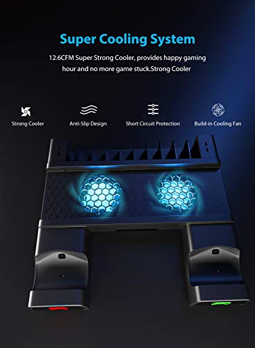 PS4 Slim Pro Controller Charger Vertical Stand Cooler, Likorlove Multifunctional Cooling Holder Charging Station with LED Indicators 10PCS Games Storage Dock Compatible for Playstation 4