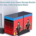 - 【14 Game Boxes Storage】 This PS5 cooling station comes with retractable game boxes storage bracket. Messy game boxes can be easily collected together on it and be quickly find your games to start next round.