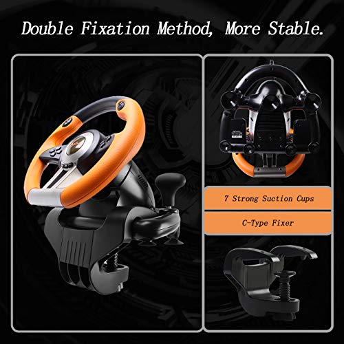 Racing Wheel, PXN-V3II 180° Game Racing Steering Wheel with Pedal and Shift Paddle, Compatible for PC, PS3, PS4, Xbox One, Nintendo Switch.(Orange)