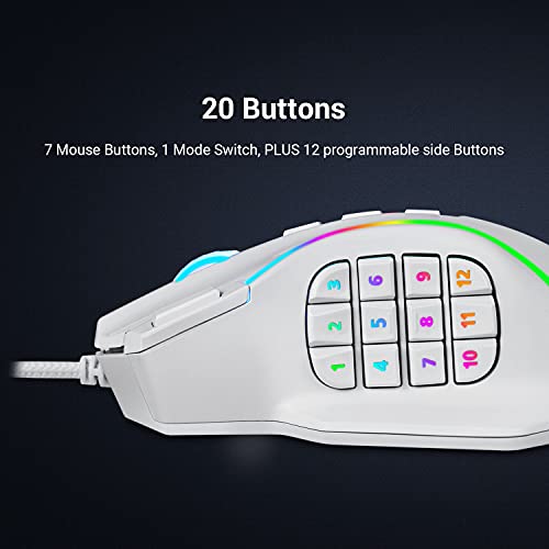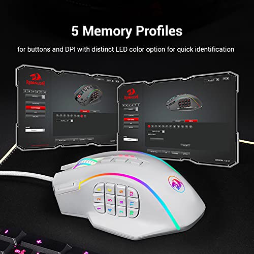 Redragon M901 Gaming Mouse RGB Backlit MMO 18 Macro Programmable Buttons with Weight Tuning Set, 12400 DPI for Windows PC Computer (Wired, White)