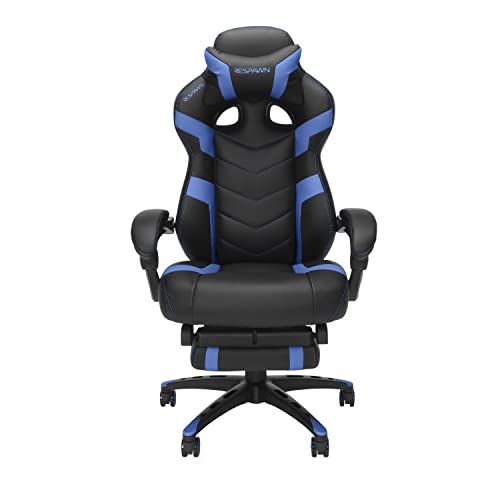 RESPAWN 110 Ergonomic Gaming Chair with Footrest Recliner - Racing Style High Back PC Computer Desk Office Chair - 360 Swivel, Adjustable Lumbar Support, Headrest Pillow, Padded Armrests - 2021 Blue