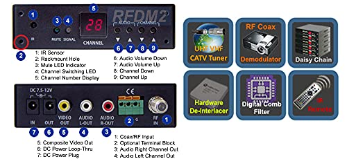 - Perfect for existing modulated cameras and works with quad video processors, multiplexers, and DVR's. Record TV channel, satellite TV RF out or camera channel through video recorder, DVR or other video capture system. Excellent RF audio extractor for routing the TV channel sound through stereo amp, receiver, headphone, Hi-Fi speaker or home theater system. Digital LED screen for TV channel display on the front panel of the module to show users the TV channel selected
