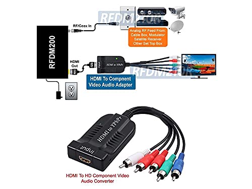 - 2-In-1 RF coax TV tuner solution for decoding RF coax CATV signals into 1080p HDMI output or HD Component YPbPr video audio output. Professional grade agile RF coax demodulator for converting the RF coax cable TV signals into either 1080p HDMI or DVI output at 1920x1080 pixels. Decode all UHF/VHF channels, analog cable TV channels, satellite RF output and other modulated outputs.