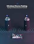 - 360° HD Stereo Extra Bass Sound Wireless Speaker: this portable speaker delivers immersive sound with rich bass, deep and highs,dynamic sound. Even at maximum volume, in the same way as the live concert performance. You will like this Stereo Sound wireless speakers.