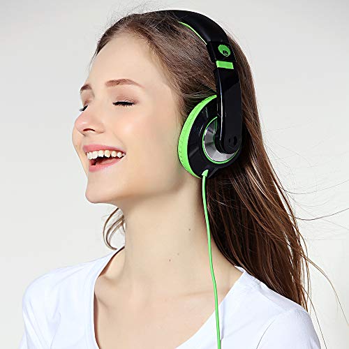 Rockpapa Comfort Kids Headphones for School, Lightweight Childrens Boys Girls Teens Over-Ear Headphones Wired 3.5mm for CD DVD Player Tablet Phone Travel Black/Green