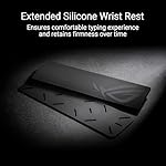 - Extended silicone wrist rest: Ensures comfortable typing experiences, and retains firmness over time