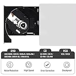 - 【Reliable Performance】With the Strong error-correcting, low impedance, and anti-interference ability, you can use this USB CD/DVD drive to read and write CDs and DVDs quietly without stuttering and noise, and won't damage your discs. Compatible with multiple discs including CD-ROM, CD-R, CD +/-RW, DVD-ROM, DVD-R, DVD+/-RW, DVD-R DL, VCD-ROM discs.