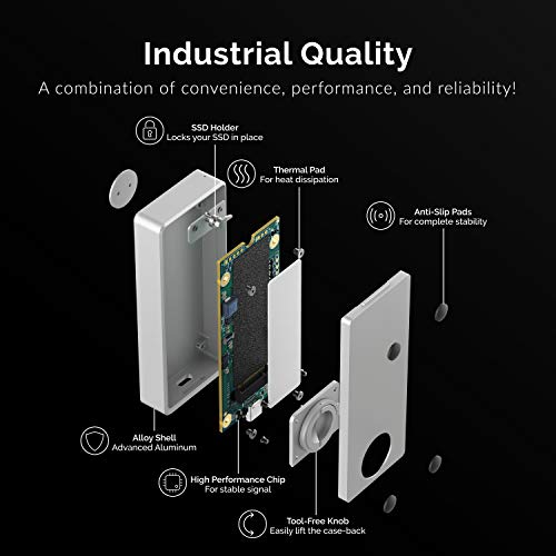 - TOOL-FREE DESIGN: No more screws! This enclosure is 100% tool-free allowing you to swap drives with ease. Simply lift the case-back by unblocking the knob and insert your drive! A pin holds your SSD in place making the process effortless! Thunderbolt 3 technology enables amazing speeds of up to 1600 MB/s.