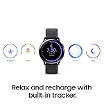 - Level up your downtime. Galaxy Watch active2’s built-in sleep tracker offers valuable insights on how to get a better night’s sleep. It also monitors your stress level and helps you recently with the integrated calm app. This device and related software are not intended for use in the diagnosis of disease or other conditions, or in the cure, mitigation, treatment or prevention of disease.