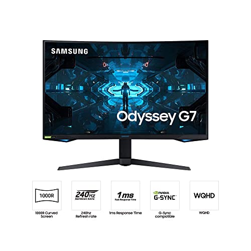 SAMSUNG 32” Odyssey G7 Series WQHD (2560x1440) Curved Gaming Monitor, 240Hz, 1ms, HDMI, G-Sync, FreeSync Premium Pro, LC32G75TQSNXZA
