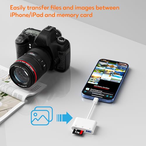 - Two-way High Speed Transfer: Enjoy swift data transfers with speeds up to 480 Mbps and easily move files between your iPhone and SD cards, upload photos and videos to your iPhone or back up your iPhone’s media to your SD card with ease.