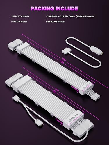 - VIBRANT RGB LIGHTING:These Sirlyr RGB PSU cables come with vibrant colors,24pin ATX cable with 80pcs LEDs when 12VHPWR with 81pcs, can be customized and controlled by rgb software for various dazzling lighting effects