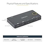 StarTech.com 2 Port Hybrid USB-A + HDMI & USB-C KVM Switch - Single 4K 60Hz HDMI 2.0 Monitor - Compact Desktop and/or Laptop HDMI KVM Switch - USB Bus Powered - Thunderbolt 3 Compatible (SV221HUC4K)