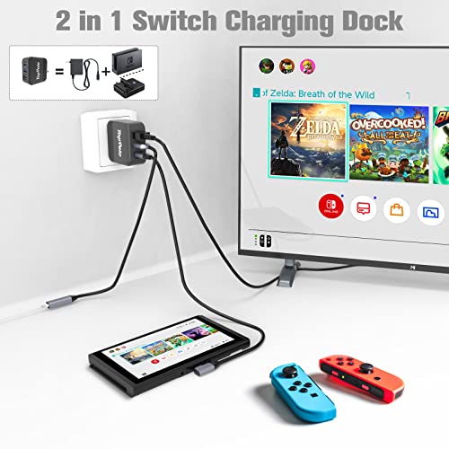 - 🎮【Never Brick Your Switch】1. Built-in smart security chips, having Short-circuit Protection, Over Power Protection, Recovery Protection and Overheating Protection, will not brick your switch. 2. No need to remove the protective shell when using it, the surface and screen of the switch will not be scratched. 3.This switch docking station is made by advanced GaN technology and high-quality materials, it is stable, safe and reliable.