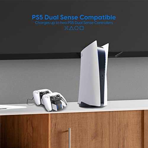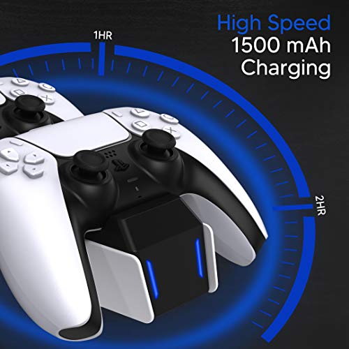 - DUAL CHARGING: PS5 dual charger never makes a player feel left out. Charge two controllers simultaneously, or use one controller while the other charges in the meantime. Made for your charging convenience.
