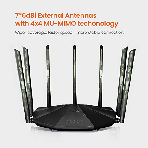 Tenda AC23 Smart WiFi Router - Dual Band Gigabit Wireless (up to 2033 Mbps) Internet Router for Home, 4X4 MU-MIMO Technology, Up to 1400 sq ft Coverage Parental Control Compatible with Alexa (AC2100)