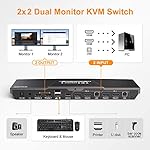 Select Variant: TESmart KVM Switch 2 Monitors 2 Computers, HDMI 2 Port Dual Monitor KVM, UHD 4K@60Hz RGB 4:4:4, USB 2.0 Hub, Stereo Audio, Hotkey, Button Switching, PC Keyboard Mouse Switcher Box with Cables