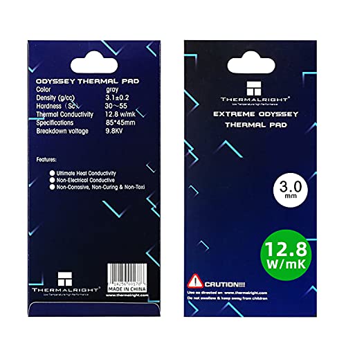 Thermalright Thermal Pad 12.8 W/mK, 85x45x3.0mm, Non Conductive Heat Resistance High Temperature Resistance, Odyssey Silicone Thermal Pads for Laptop Heatsink/GPU/CPU/LED/PS4 Cooler(3.0mm)
