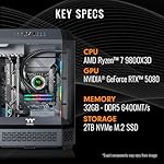 - AMD Ryzen 7 9800X3D CPU, AMD X870 Chipset motherboard, 32GB DDR5 6400MT/s RGB, 2TB NVMe M.2, WiFi, Windows 11