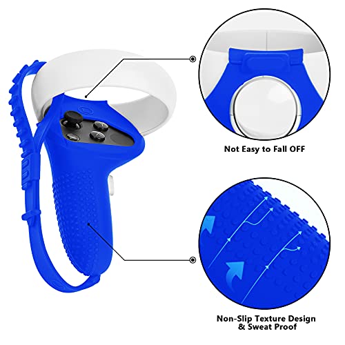 TOMSIN Touch Controller Grip Cover with Silicone Face Cover, Protective Lens Cover, Silicone Handle Strap for Oculus Quest 2, Sweatproof Lightproof Anti-Throw Accessories Set (Blue)