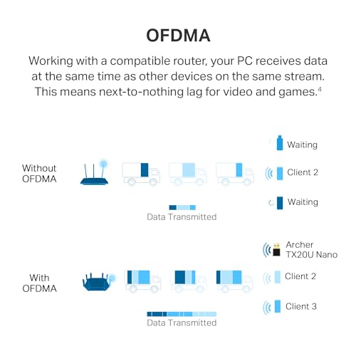 - 𝐋𝐨𝐰𝐞𝐫 𝐘𝐨𝐮𝐫 𝐏𝐢𝐧𝐠 𝐰𝐢𝐭𝐡 𝐎𝐅𝐃𝐌𝐀: Working with a compatible router, your PC receives data at the same time as other devices on the same stream, resulting in limited lag for videos and online gaming.