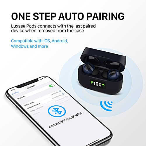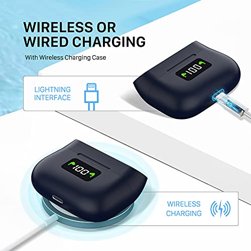 LUXSEA Wireless Bluetooth Earbuds for iPhone Android, LED Power Display Bluetooth Earphones with Wireless Charging Case, in Ear Built-in Mic Headphones Touch Control for Sports Running (Navy)