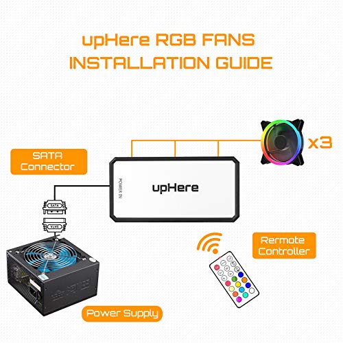 upHere RGB Series Case Fan, Wireless RGB LED 120mm Fan,Quiet Edition High Airflow Adjustable Color LED Case Fan for PC Cases-3 Pack,RGB123-3