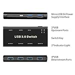 - This 4 Port USB 3.0 Switcher allows one button toggle between 2 computers to share 4 USB 3.0 peripheral devices without constantly pull cables or set up complicated network sharing software.