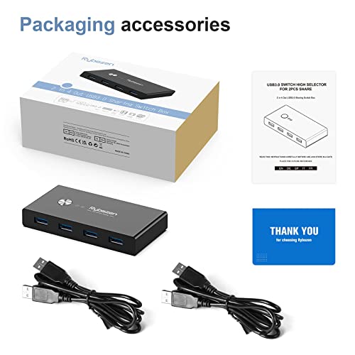 - 【One Button Switch,Multiport Connection】Rybozen 4 port USB Switcher allows one button swapping between 2 computers to share 4 USB 3.0 peripheral devices .It's a good choice if you have multiple PCs or Macs.
