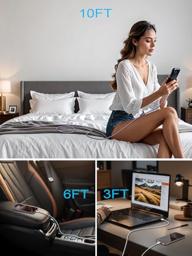 USB C Cable 3FT+6FT+10FT 3-Pack, USB A to USB Type C Charger Cord, 3A Fast Charging Compatible with iPhone 15 16 16e Pro, Samsung S24/S23 S22/Note 20/10, Car Play, Apple iPad Android Accessories